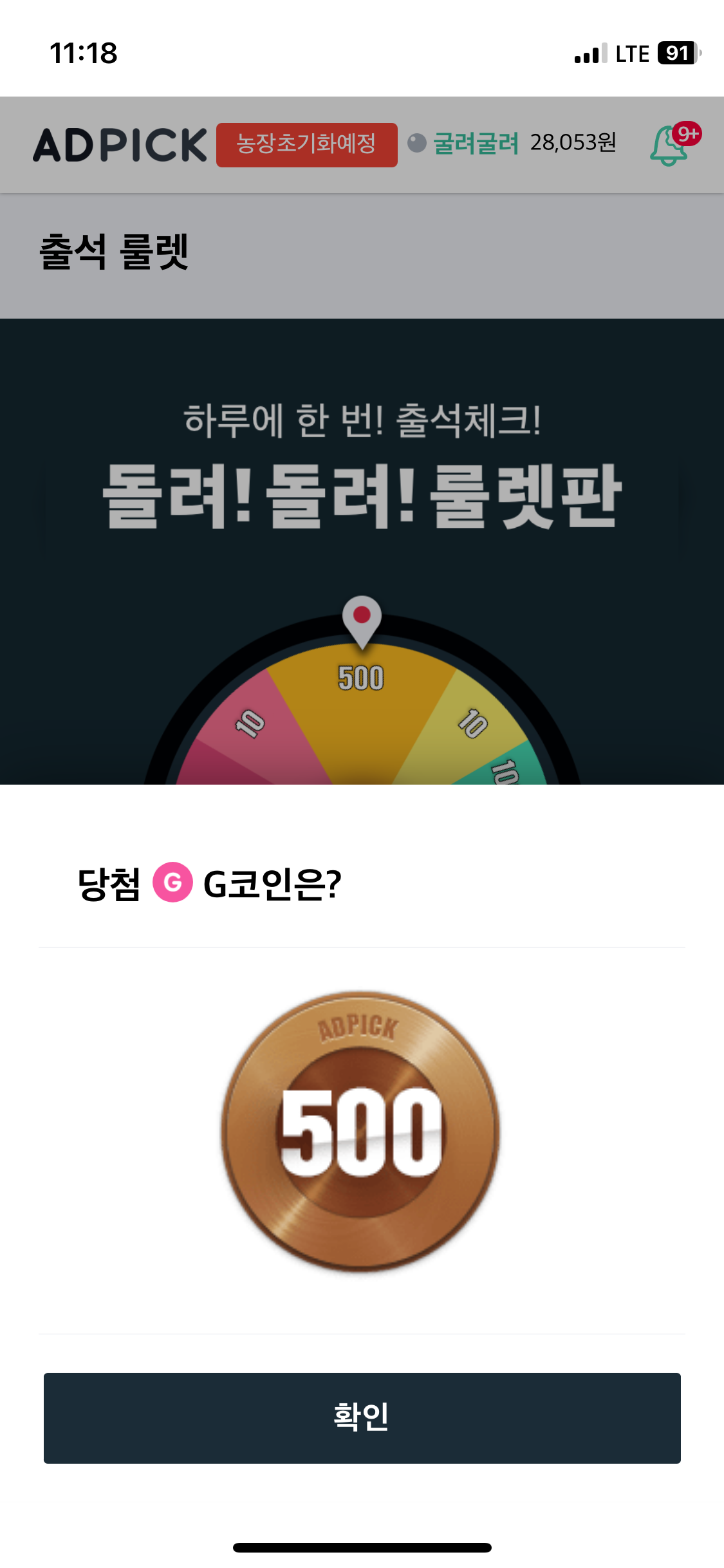 오랜만에 룰렛을 돌렸는데 500원 나오니