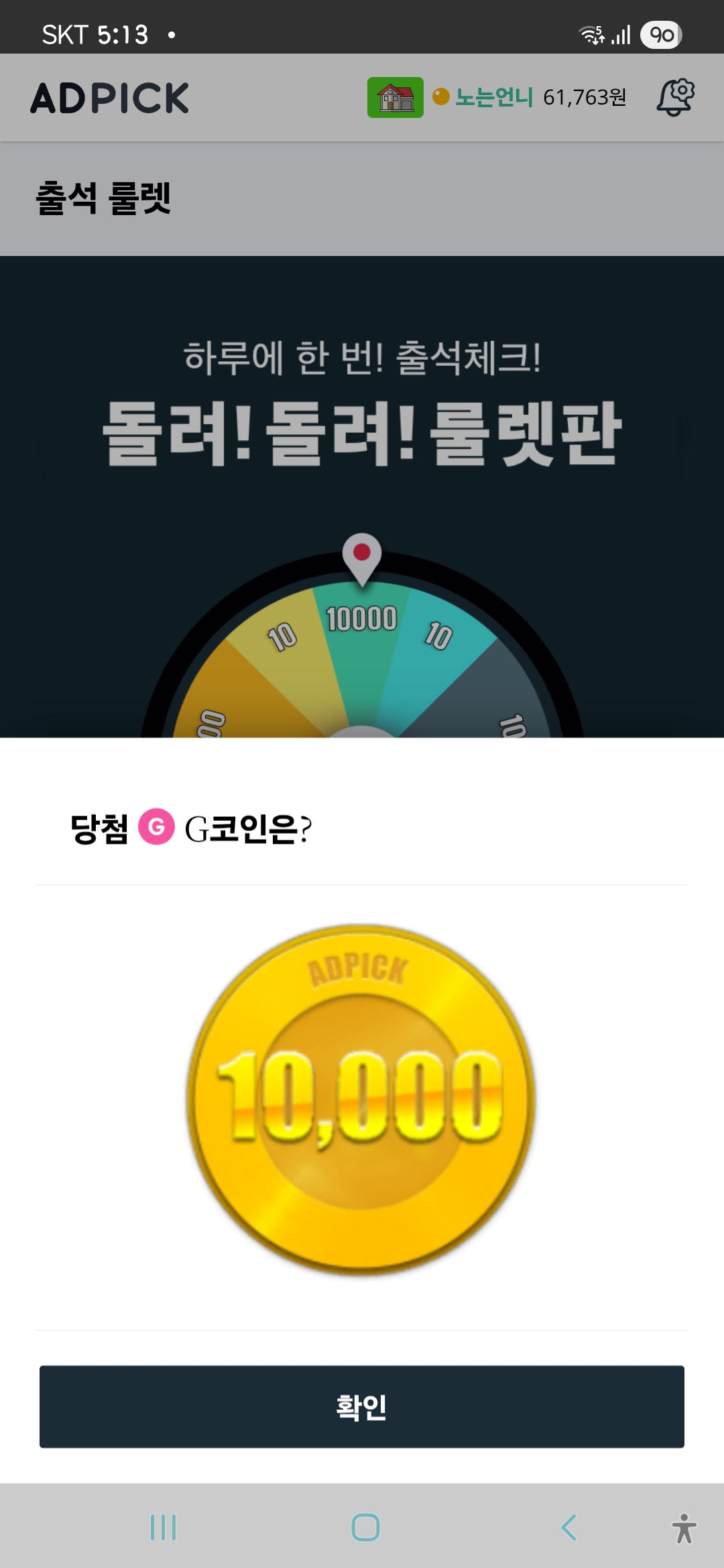 와~~룰렛에서 만 포인트 당첨은 처음 입니다ㅎㅎ