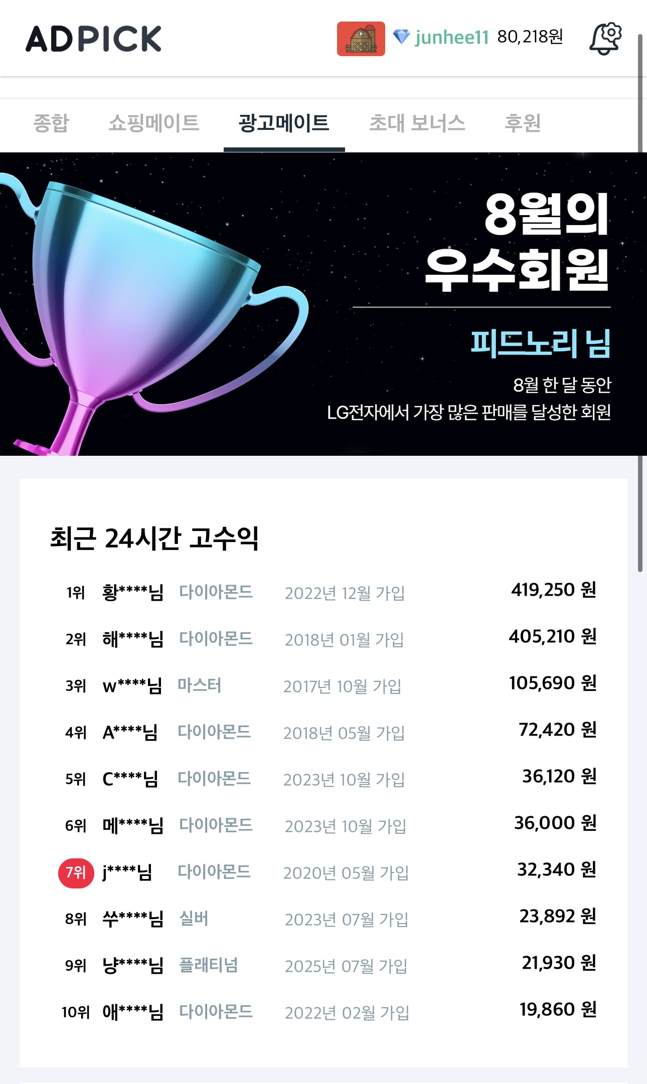 회원가입을 하시면 앱을 홍보해수익을 올릴 수 있는 링크가 발급됩니다!놀라운 수익을 낼 수 있는 애드픽을 시작해보세요!